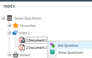 Right-click on an index/folder/document and click Ask Question.