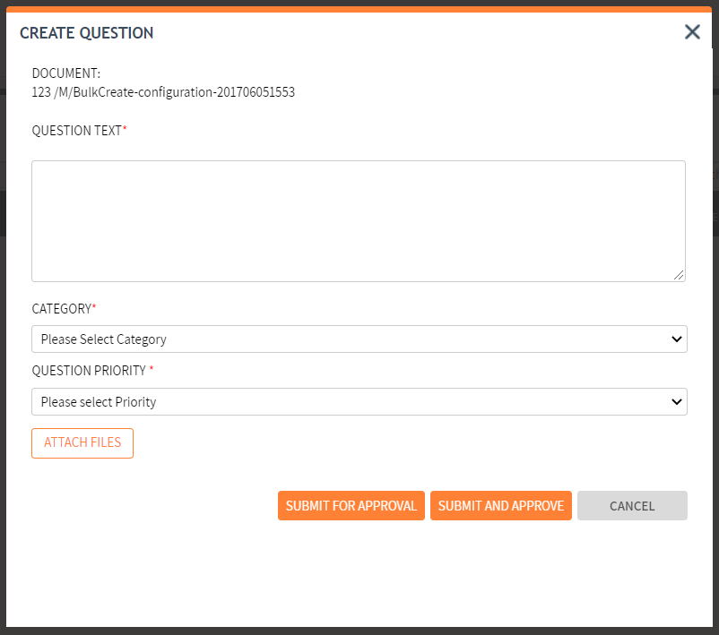Choose the CATEGORY and QUESTION PRIORITY and then click SUBMIT FOR APPROVAL.